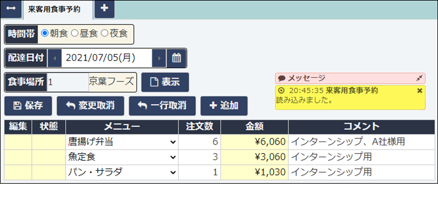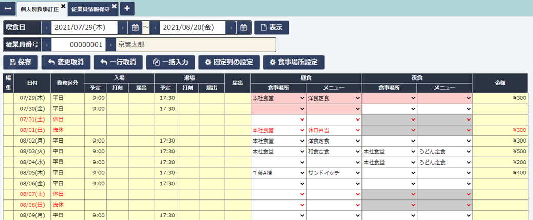 従業員区分での、会社負担額の有無や、来客者用の食事予約も一緒に発注することが可能です。