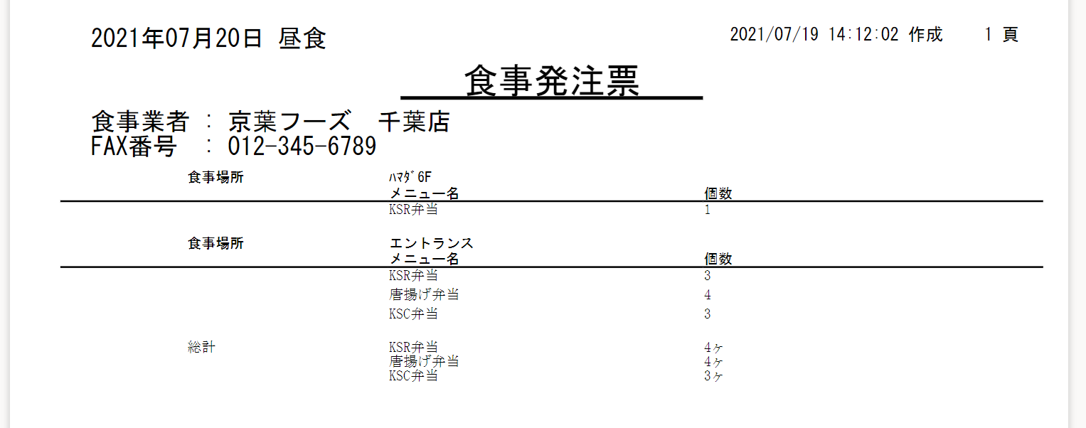 食事業者側の発注を、発注書を電子メールに添付して行うことができます。もちろん、発注票も印刷できますので、FAX発注もの可能です。