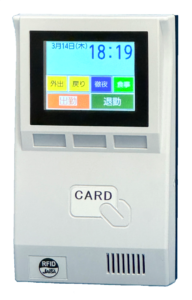 KS160Ⅱは磁気カードに対応した端末です。通常の打刻の他にも、電気錠の管理端末としても使用できます。拡張性にも優れるほか、停電時のデータ保護機能も備わっております。