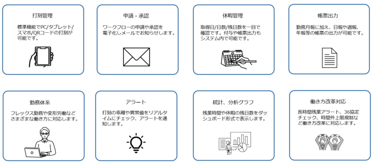 クイックスタートパックは、短期間かつローコストでの勤怠管理システム・就業管理システム導入を実現します。